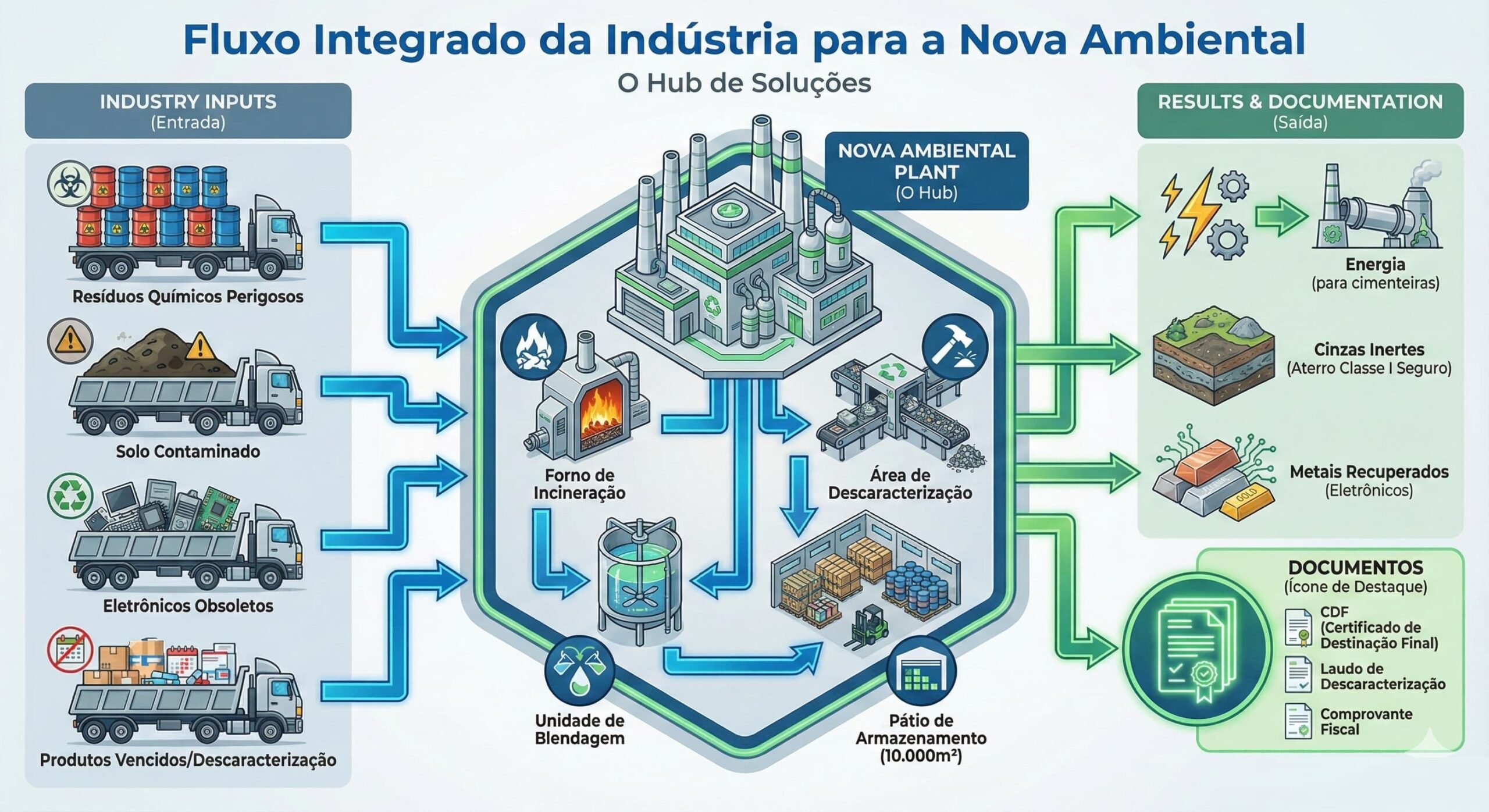 Uma única planta, múltiplas tecnologias: A solução definitiva para 100% dos seus resíduos industriais.